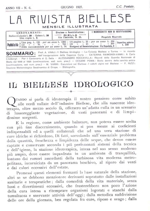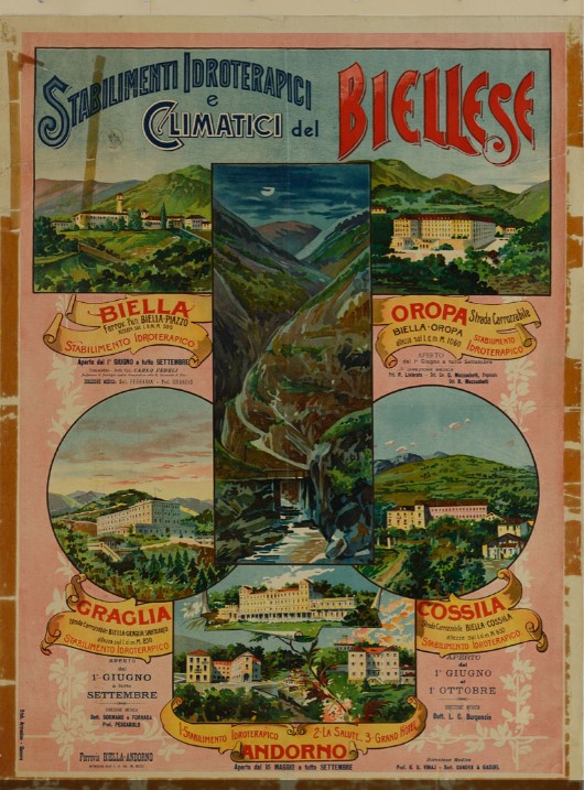 “Quando si parla di idroterapia, il nostro pensiero corre subito alle verdi vallate dell’industre Biellese, che alla nascente idroterapia, oltre mezzo secolo fa, offersero un’adatta culla in uno scenario di lussureggiante vegetazione, di vasti panorami e limpidissime sorgenti.”